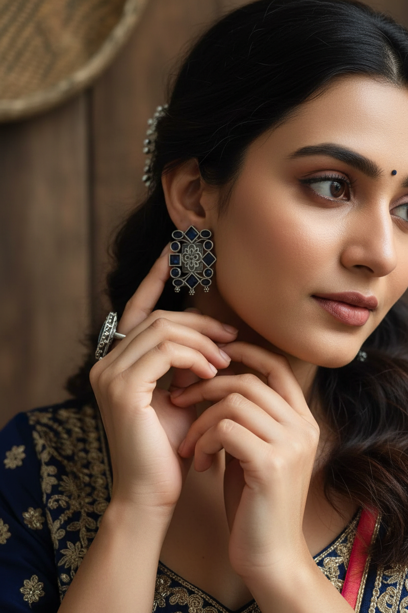 Blue Square Oxidised Earrings