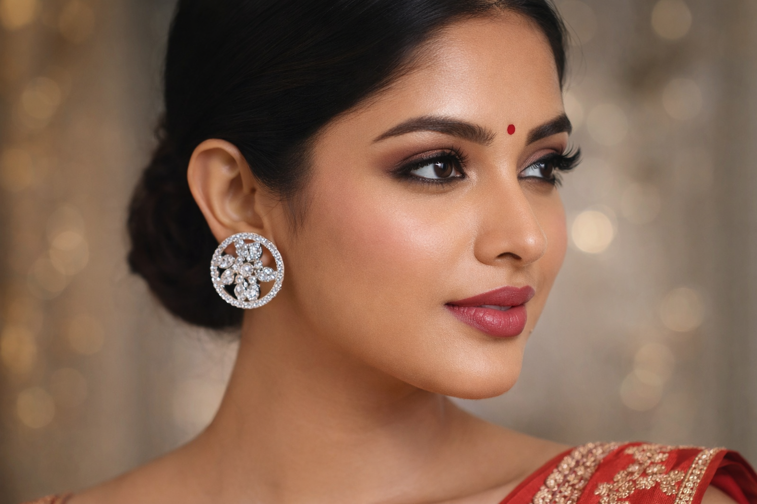 American diamond earrings are renowned for their brilliance and affordability. Despite being called "diamonds," these earrings are typically made from high-quality cubic zirconia or other diamond simulants rather than genuine diamonds. The stones are expertly cut to mimic the sparkle and clarity of real diamonds, offering an elegant and luxurious look without the high price tag. They come in a variety of designs, from simple studs to elaborate chandelier styles, and are often set in metals like sterling silver, gold, or platinum-plated alloys. American diamond earrings are a popular choice for both everyday wear and special occasions due to their beauty, versatility, and cost-effectiveness.