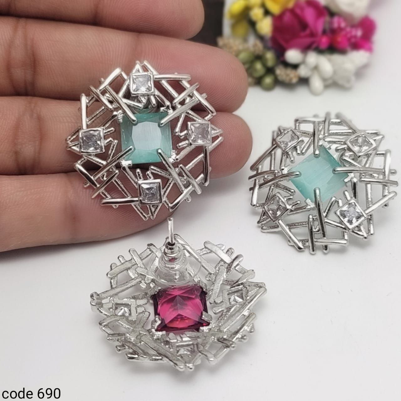 American diamond earrings are renowned for their brilliance and affordability. Despite being called "diamonds," these earrings are typically made from high-quality cubic zirconia or other diamond simulants rather than genuine diamonds. The stones are expertly cut to mimic the sparkle and clarity of real diamonds, offering an elegant and luxurious look without the high price tag. They come in a variety of designs, from simple studs to elaborate chandelier styles, and are often set in metals like sterling silver, gold, or platinum-plated alloys. American diamond earrings are a popular choice for both everyday wear and special occasions due to their beauty, versatility, and cost-effectiveness.